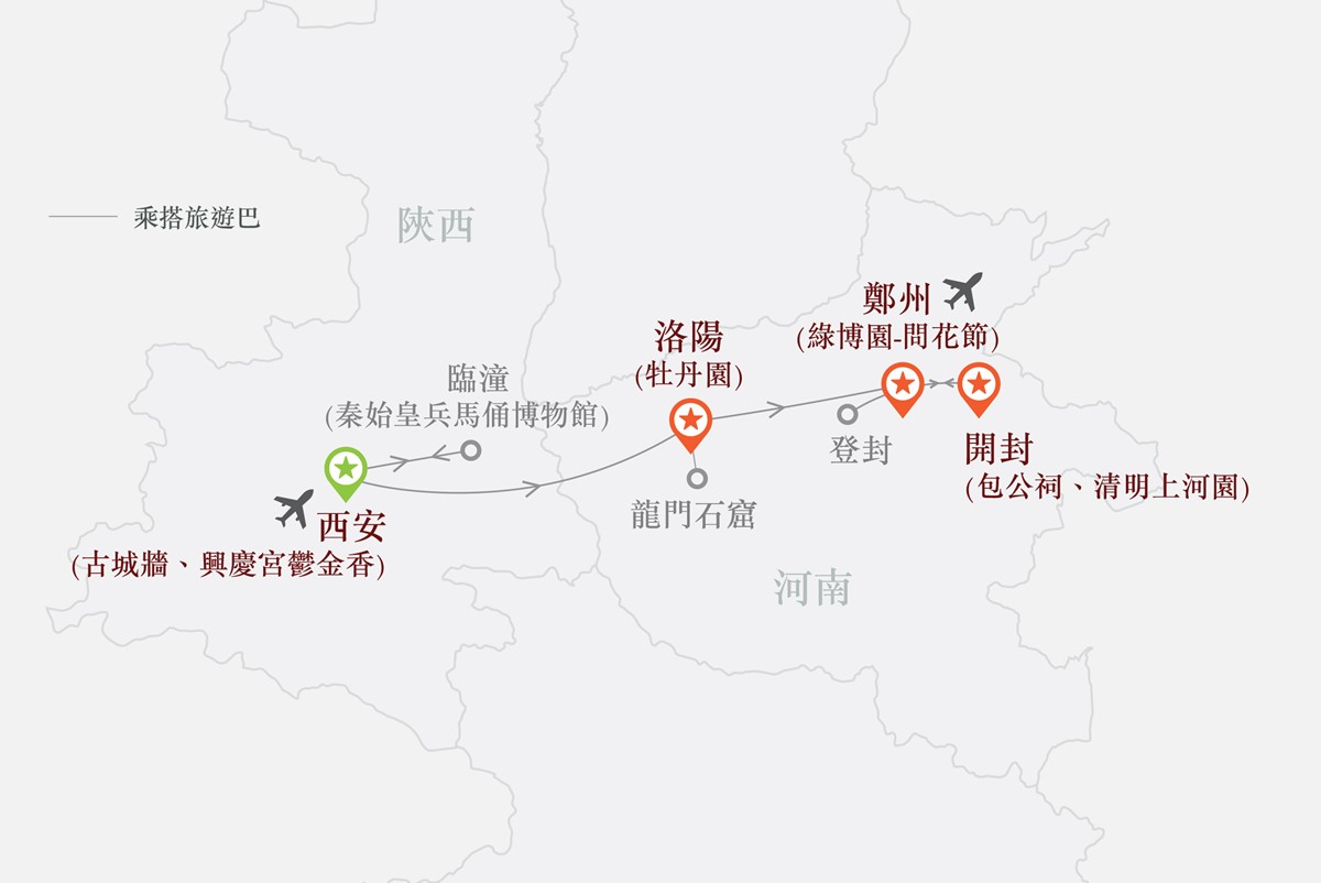 - 暢遊四大《世界文化遺產》:秦始皇陵、龍門石窟、少林寺、大雁塔。