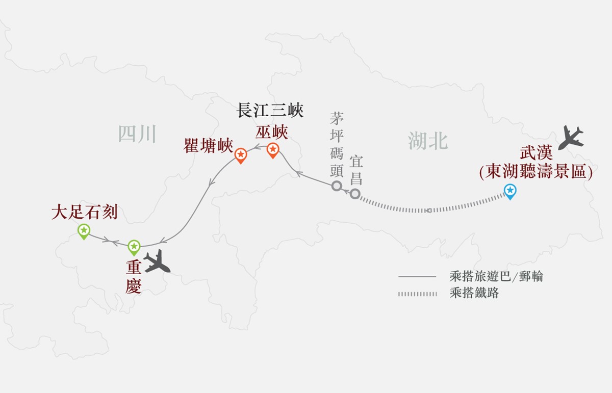 「長江探索號」每天上岸自選遊覽。推薦﹕三峽之顛高位看三峽景色、遊三峽大壩世紀工程、巫峽口觀看紅葉。紅葉期間還可以觀賞萬山紅葉、巫山雲雨,是攝影愛好者的常選之地;上岸觀看表演﹕《千年巴東一夜回》,它是巴東推動旅遊高品質發展「十大重點工程」的重點文化項目之一。深度暢遊《世界文化遺產》大足石刻,遊覽寶頂石刻。