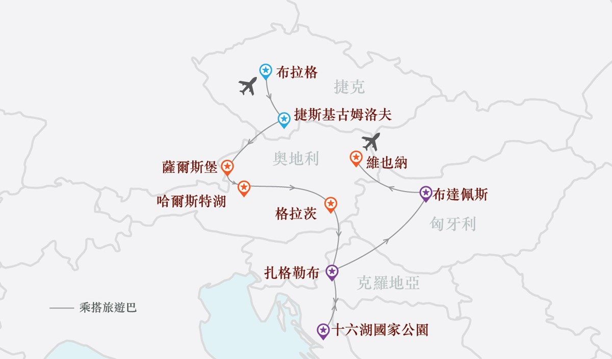 分別於布拉格、札格勒布(2晚)均安排入住5星級酒店,舒適寫意。 美饌珍饈 * 品嚐東歐各地美食,包括洞穴餐廳風味餐、波希米亞焗鴨、燒豬肋骨配飲品、烤豬風味餐、匈牙利民族舞Goulash晚餐,讓您嚐盡異國美饌風味。