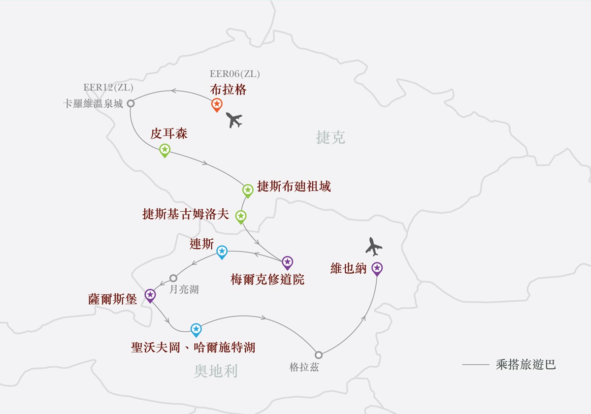 - 參觀布拉格城堡,包括堡內的聖維特教堂,更沿「黃金小徑」到達古雅的查理斯橋;及前往著名的卡羅維溫泉城,隨意品嚐各種溫泉水。