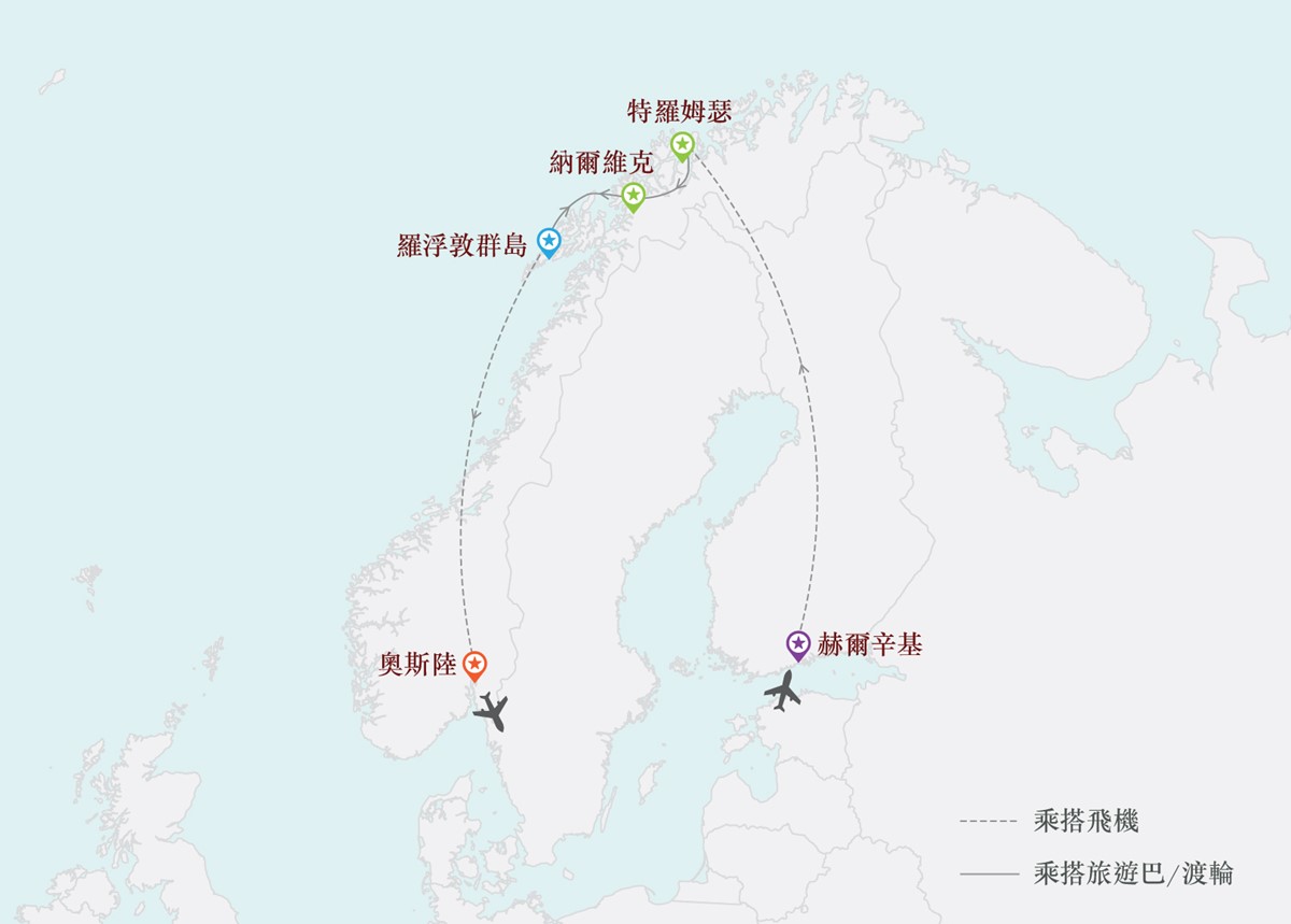 - 除參與精彩的馬拉松賽事外,更安排暢遊特羅姆瑟、納爾維克及挪威羅浮敦群島等挪威北海岸地區,讓您感受午夜太陽景致,適合首次到訪或是重遊北歐的旅人。