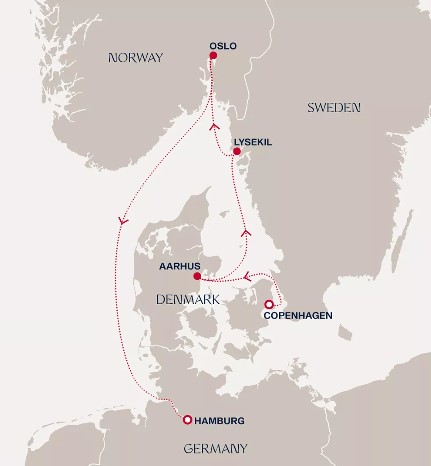 - 暢遊: 丹麥(哥本哈根、奧胡斯)、瑞典(呂瑟希爾(約塔蘭))、挪威(奧斯陸)、德國(漢堡)