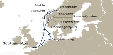 - 暢遊:英格蘭(修咸頓)、德國(漢堡)、挪威(奧勒松、莫爾德、特隆赫姆、肖倫、魯斯卓峽灣 / 挪威 (景觀巡航)、松恩峽灣 / 挪威 (景觀巡航)、哈丹格峽灣 / 挪威 (景觀巡航))