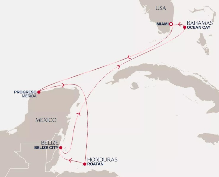 - 暢遊: 美國(邁阿密)、墨西哥(梅里達(普羅格雷索))、洪都拉斯(羅阿坦島)、伯利茲(貝里斯市)、巴哈馬(海洋礁)
