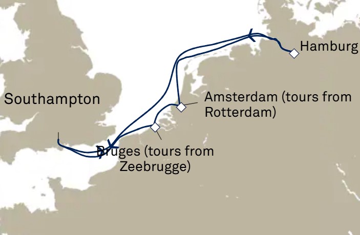 - 暢遊:英格蘭(修咸頓)、德國(漢堡)、荷蘭(鹿特丹)、比利時(澤布呂赫 (布魯日)