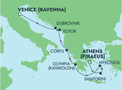 - 暢遊: 意大利(威尼斯(拉溫納))、克羅地亞(杜布羅夫尼克)、黑山共和國(科托爾)、希臘(科孚島)、奧林匹克 (卡塔科隆)、米科諾斯島、聖托里尼、雅典(比雷埃夫斯))