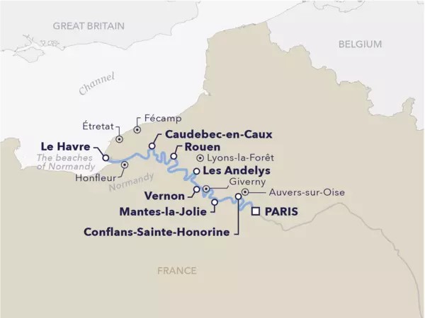 - 暢遊:法國(巴黎、孔夫朗、盧昂、勒阿弗爾、科地區科德貝克、萊桑德利、韋爾農、芒特拉若利)