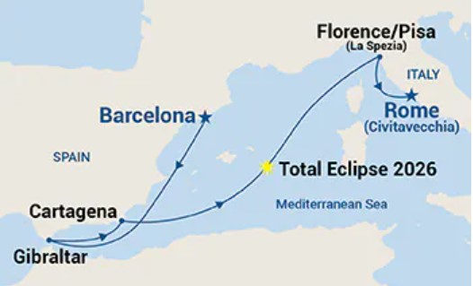 2026年日全蝕 7晚 西班牙、直布羅陀及意大利遊輪假期