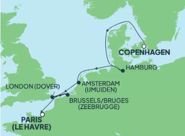 - 暢遊: 丹麥(哥本哈根)、德國(漢堡)、荷蘭(阿姆斯特丹(艾默伊登))、英格蘭(倫敦(多佛爾))、比利時(澤布呂赫(布魯塞爾/布魯日))、法國(勒阿弗爾(巴黎))