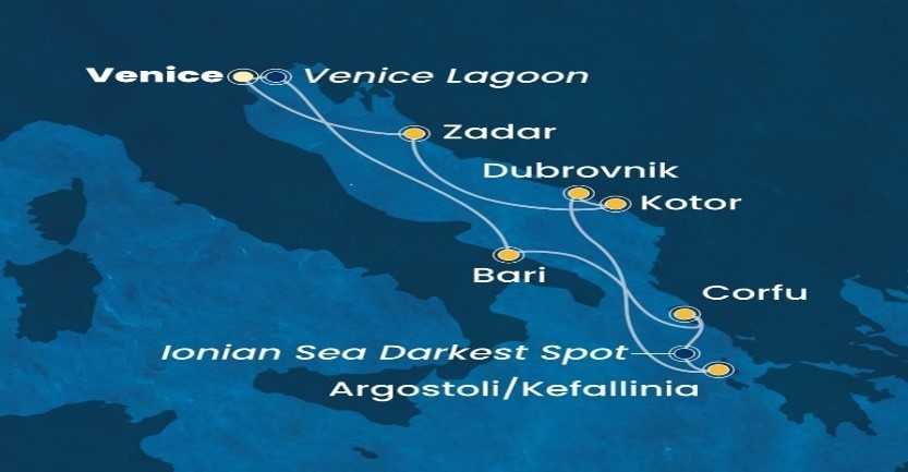 - 暢遊: 意大利(馬格拉 (威尼斯)、巴里 )、希臘(科孚島 、阿哥斯托 / 凱法利尼亞島 )、克羅地亞(杜布羅夫尼克、 扎達爾 ) 、黑山(科托爾)