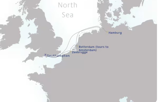 - 暢遊:英國(修咸頓)、德國(漢堡)、荷蘭(鹿特丹)、比利時(澤布呂赫 (布魯日))