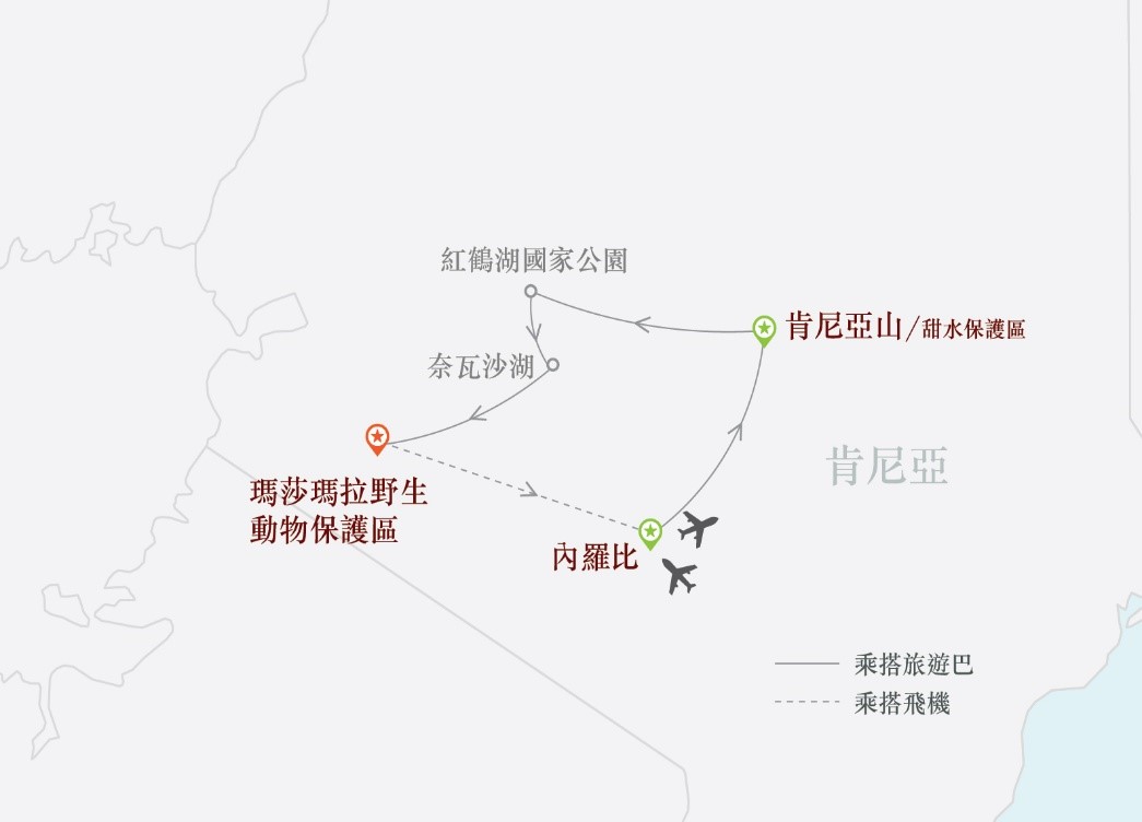 安排乘搭乘搭小型內陸客機由瑪莎瑪拉保護區飛返首都內羅比,節省5-6小時行車時間。