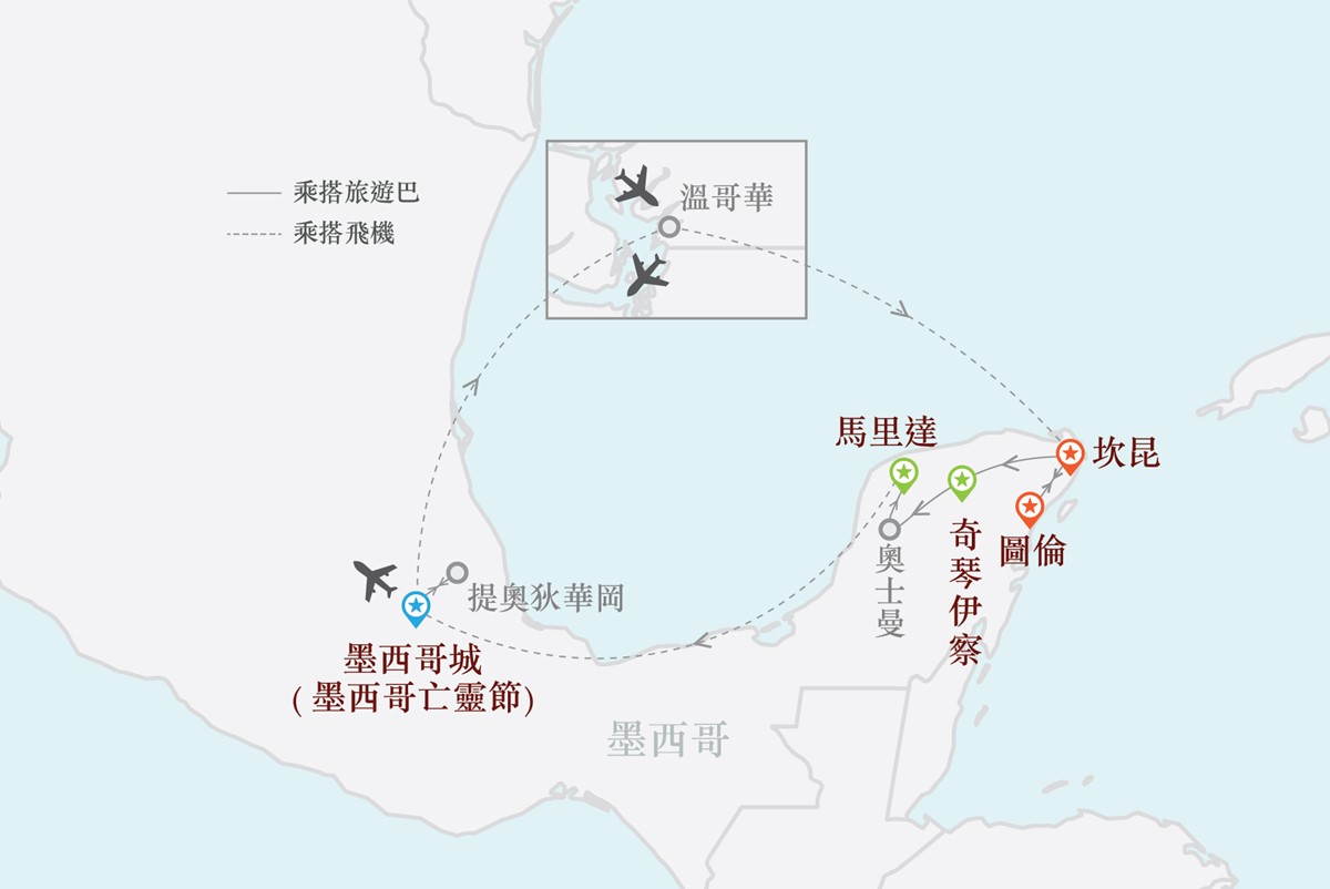 - 充裕時間暢遊著名度假勝地坎昆,盡享加勒比海陽光海灘,拍攝日出風情。